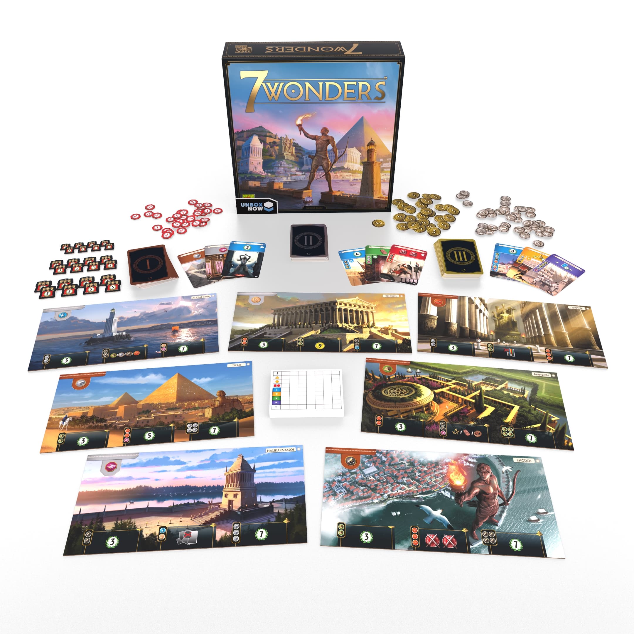 Erkundet das Universum von 7 Wonders und taucht in die Erweiterungen des Spiels ein.